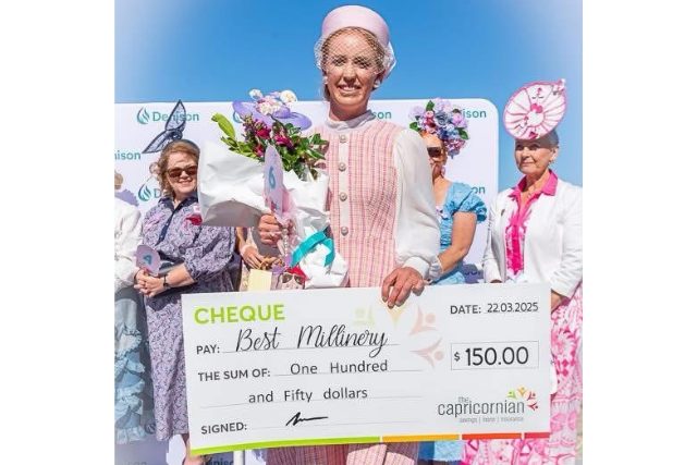 As part of Fashions in the Field, we sponsored the Best Millinery category, recognising creativity, elegance, and local flair. Congratulations to this year’s winner, who received a $150 cheque proudly presented by The Capricornian!